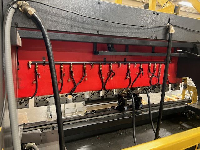 The Amada FBD NT series is a high accuracy, hydraulic, up-acting press brake.  It features an advanced design which offers quick setup, high-speed operation, and increased throughput.  This model has a 110 Ton capacity with a 8′ overall length.