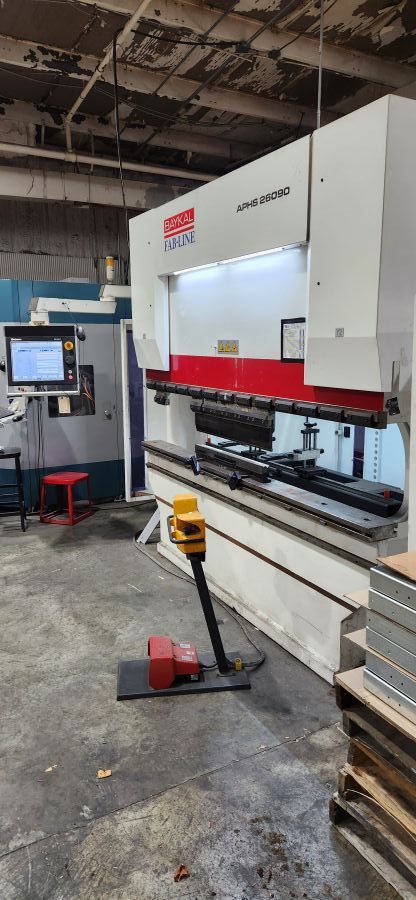 Baykal APHS 26090 is a hydraulic press brake with a 90 ton capacity and a CNC control and backgauge. APHS press brakes are fast, accurate, and repeatable providing a productive and cost efficient machine for any shop.
